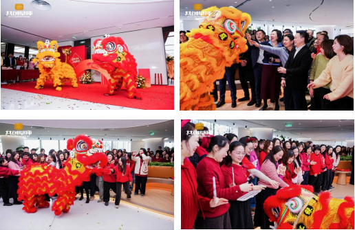 剪彩儀式后,現(xiàn)場鑼鼓鏗鏘,醒獅歡騰。在全場嘉賓與員工的共同矚目下,王強(qiáng)翔董事長與特邀嘉賓共同為醒獅點(diǎn)睛,寓意為共創(chuàng)草坪注入源源不斷的蓬勃生機(jī)與發(fā)展活力。