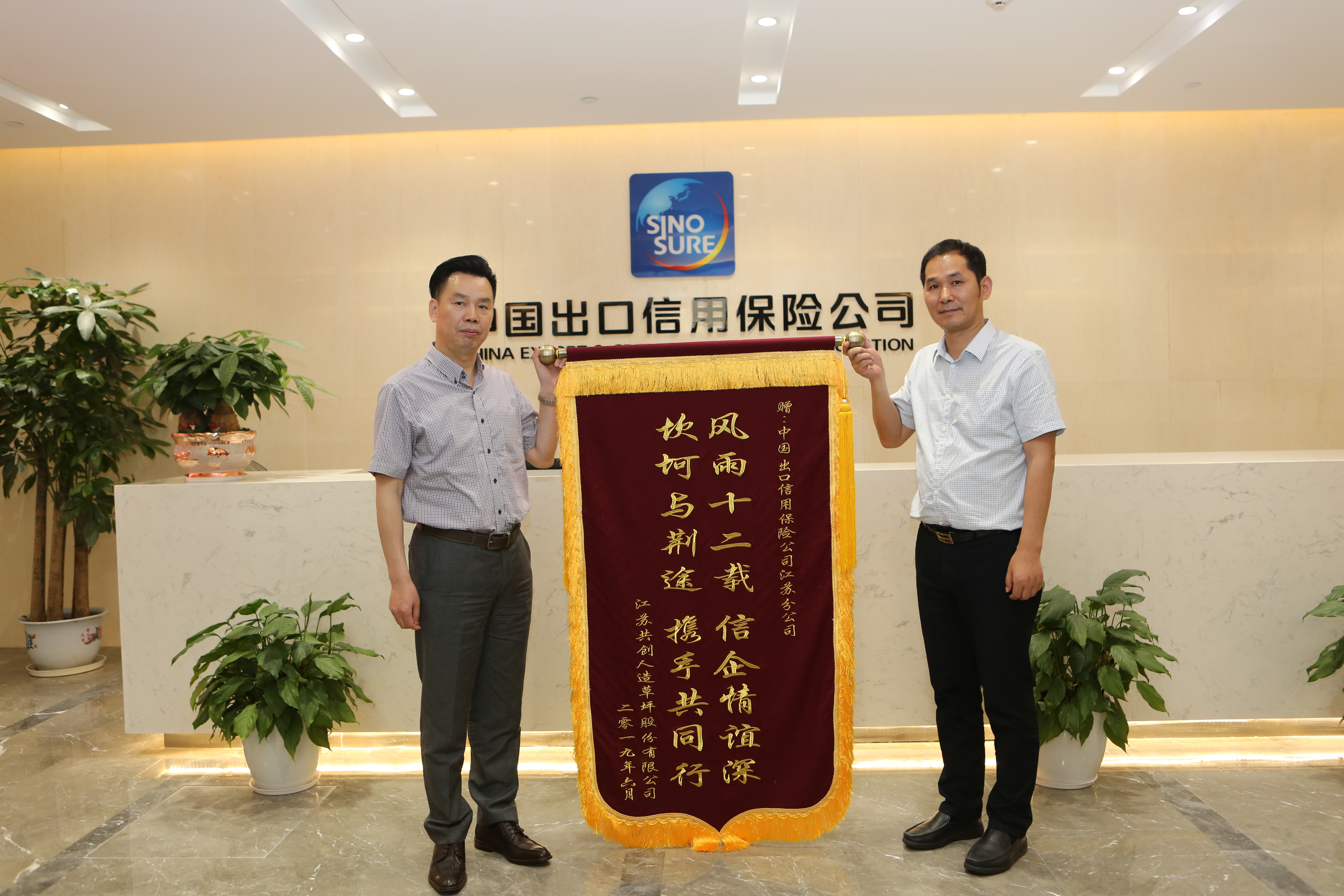 會議結(jié)束后,王強(qiáng)翔董事長向江蘇信保贈送了錦旗,表達(dá)對江蘇信保的感謝!