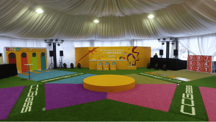 另外,CCG還贊助了“DOMOTEX ASIA 20周年悅享集市”活動,位于博覽中心1號入口大廳處的悅享集市場館內(nèi)整個地面全部由共創(chuàng)人造草的產(chǎn)品鋪設(shè),綠草與彩色的人造草坪構(gòu)成整齊的圖案,與游戲設(shè)施相映成趣,給悅享集市活動增添了繽紛色彩。